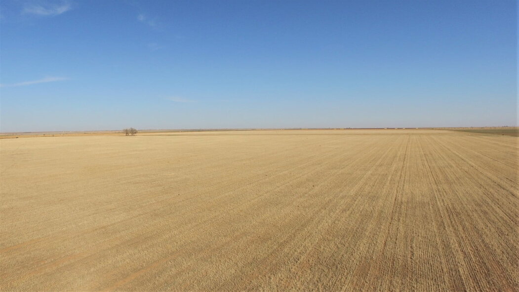 SOLD! The east side of this farm is very flat with good soils. It is currently planted to dryland wheat. The sprinkler has been removed, but the pad and underground line is still intact. There are two wells, one has a 20 HP sub and the south well is a dry hole. The west side of the property was planted to native grass using the EQUIP Program this year. A Playa Lake is on the west side of the property, and a homesite on the north side has been cleaned up. The Seller is reserving 1/2 of the commercial wind …