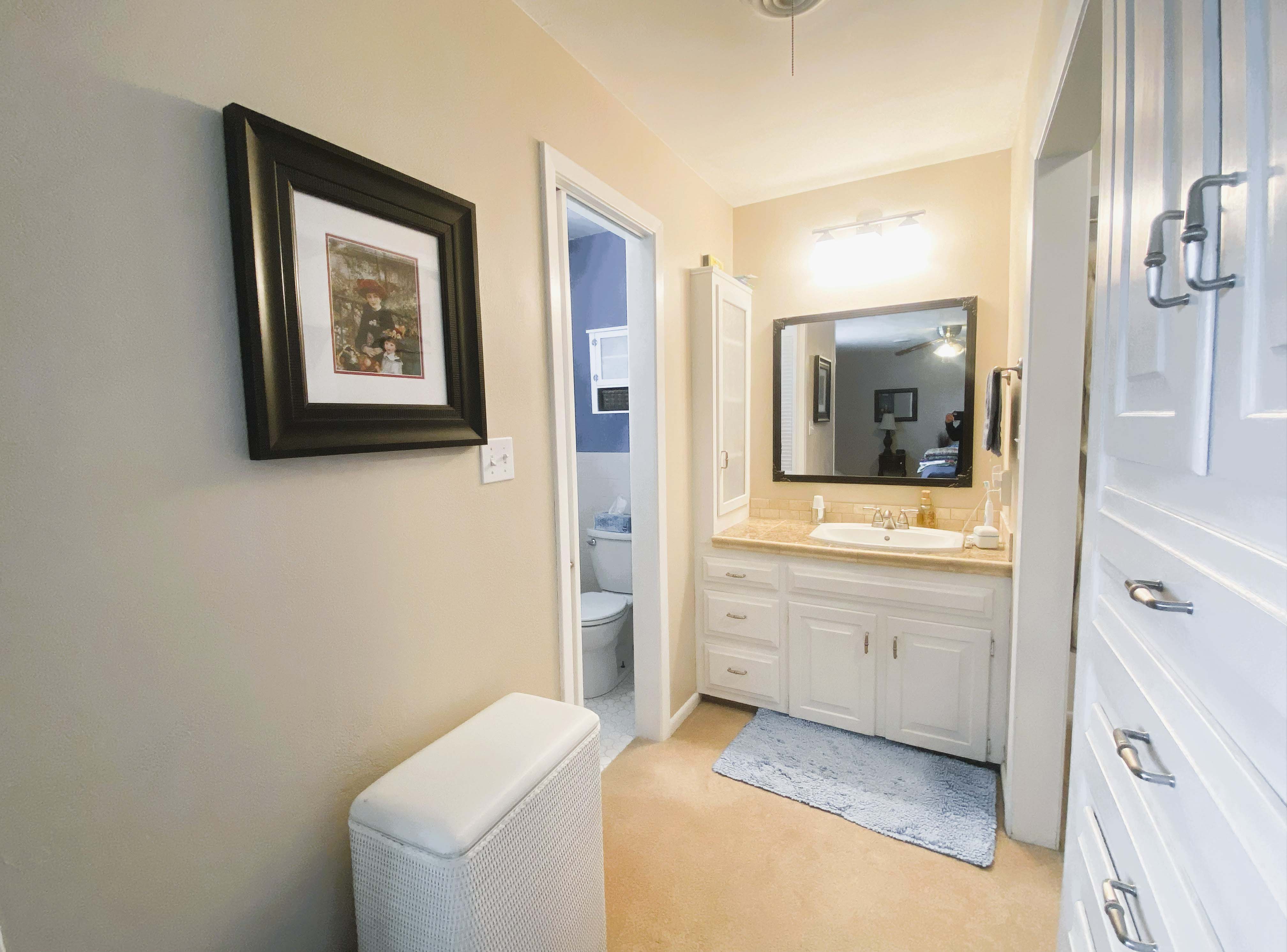 The spacious primary bedroom offers a luxurious retreat with a large attached bathroom and a walk-in closet. Two generously sized guest bedrooms provide comfort and flexibility for family or visitors.
