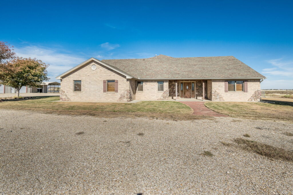 This 63 +/- acre gem is a rare opportunity located just 6.5 miles south of Canyon, TX, on Buffalo Lake Road (FM 1714). It truly has everything you could want in a country property! The custom three-bedroom, two-bath brick home built in 2005 features 2,338 sq ft of thoughtfully designed living space. The isolated master suite includes his and hers closets, a soaking tub, and a spacious walk-in shower. Two additional bedrooms share a hall bath on the opposite side of the home, with a centrally located bonus room perfect for an office, craft space, or media nook. The open-concept kitchen and living area flow seamlessly into the heart of the home—a 1,413 sq ft climate-controlled indoor/outdoor entertainment haven. Soak in the hot tub, swim in the endless pool, and take in sweeping, unobstructed views through a wall of windows. With surround sound, a vent hood, and a cozy fireplace, it’s a showstopper for entertaining family and friends. Open the surrounding windows and doors to welcome in the cool evening breeze or the scent of spring rain.