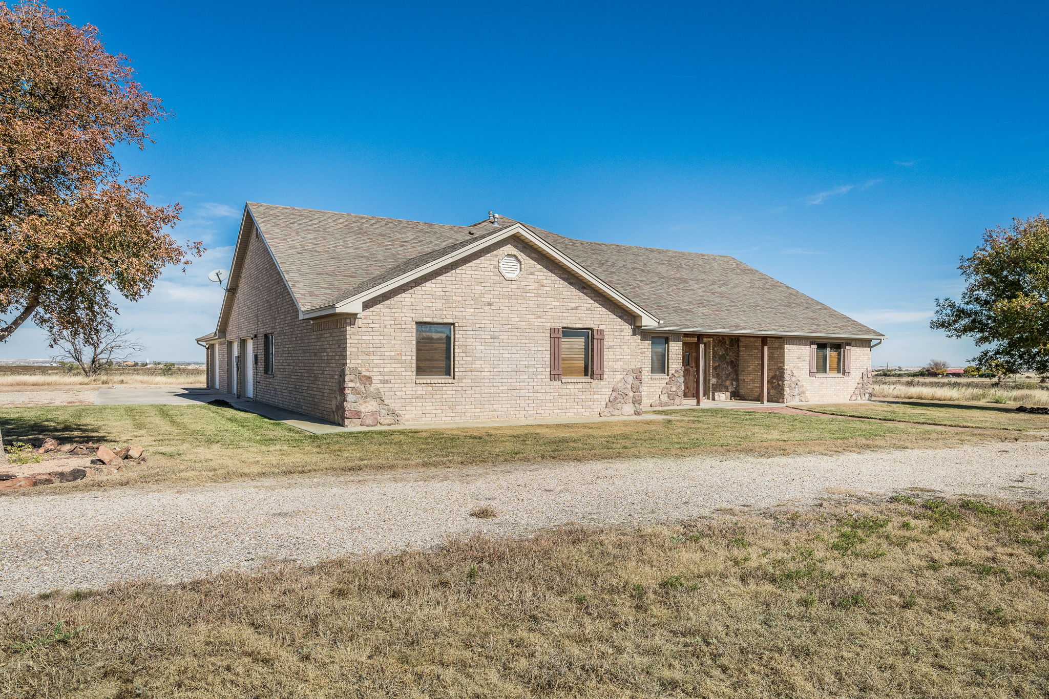 This 63 +/- acre gem is a rare opportunity located just 6.5 miles south of Canyon, TX, on Buffalo Lake Road (FM 1714). It truly has everything you could want in a country property! The custom three-bedroom, two-bath brick home built in 2005 features 2,338 sq ft of thoughtfully designed living space. The isolated master suite includes his and hers closets, a soaking tub, and a spacious walk-in shower. Two additional bedrooms share a hall bath on the opposite side of the home, with a centrally located bonus room perfect for an office, craft space, or media nook. The open-concept kitchen and living area flow seamlessly into the heart of the home—a 1,413 sq ft climate-controlled indoor/outdoor entertainment haven. Soak in the hot tub, swim in the endless pool, and take in sweeping, unobstructed views through a wall of windows. With surround sound, a vent hood, and a cozy fireplace, it’s a showstopper for entertaining family and friends. Open the surrounding windows and doors to welcome in the cool evening breeze or the scent of spring rain.