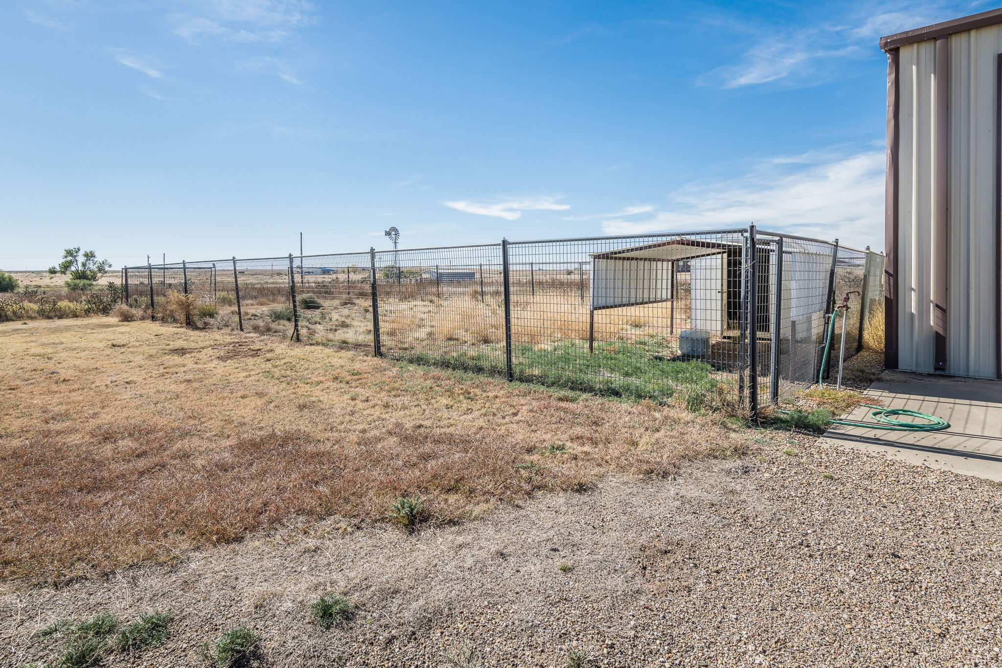 Outside, the amenities continue to impress. A three-car attached garage features a half bath and a secure gun safe/above-ground storm shelter. The 45’ x 80’ metal shop includes a half bath and a 378 sq ft office, plus four overhead doors for easy RV and equipment access. A nearby 10’ x 20’ storage building with a carport offers additional storage space. Let’s not forget your four-legged family members! When they are done exploring the vast property, there is a 40’ x 60’ Priefert dog pen for them to enjoy. For those that love farm fresh eggs, there is also a well-built chicken coop on the north side of the shop.