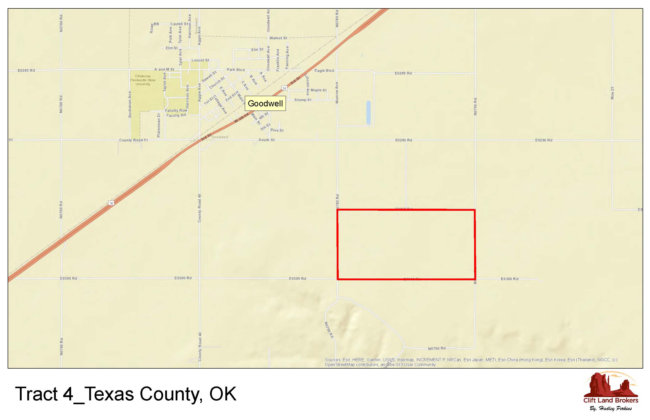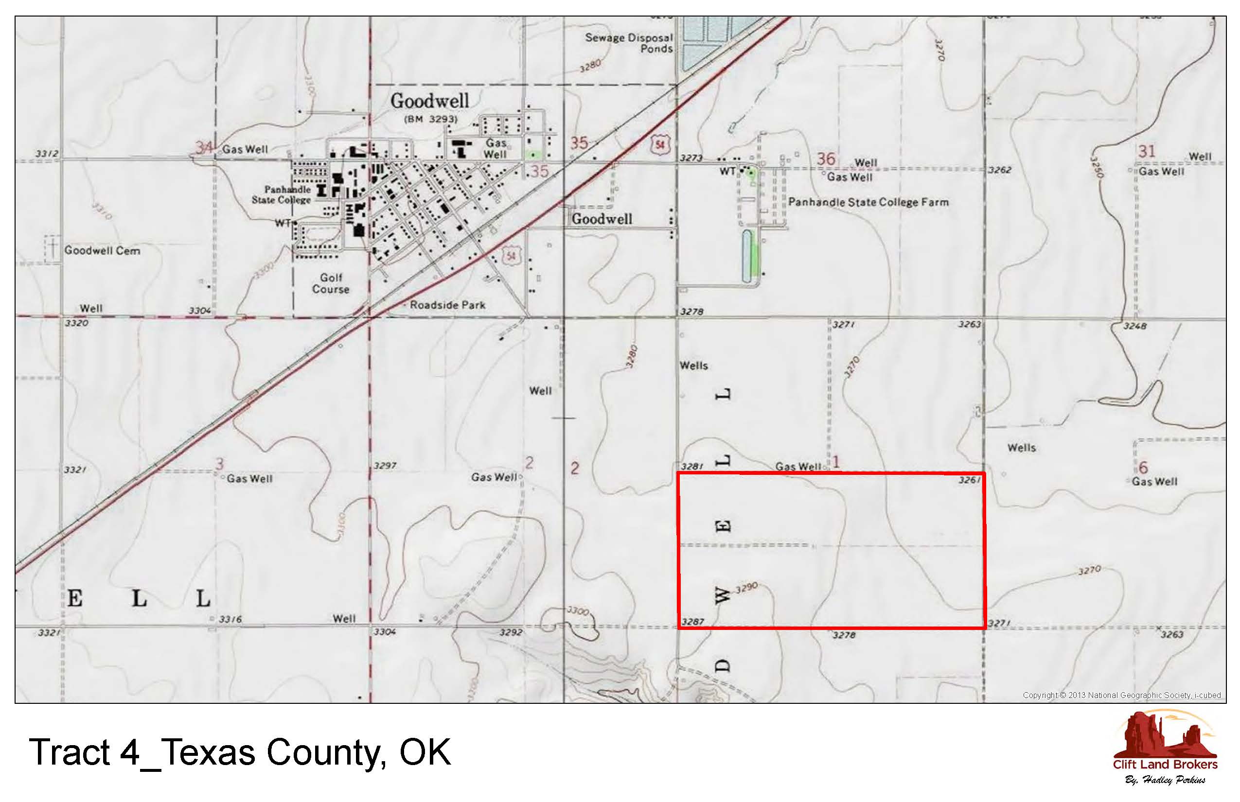 This is a clean tabletop flat farm with no improvements other than a barbed wire fence on the south boundary line. Caliche roads provide access and the farm is a stone’s throw from the town of Goodwell. Gruver clay loam soils offer excellent crop production given adequate moisture. Check our website for other Texas County listings nearby www.cliftlandbrokers.com.