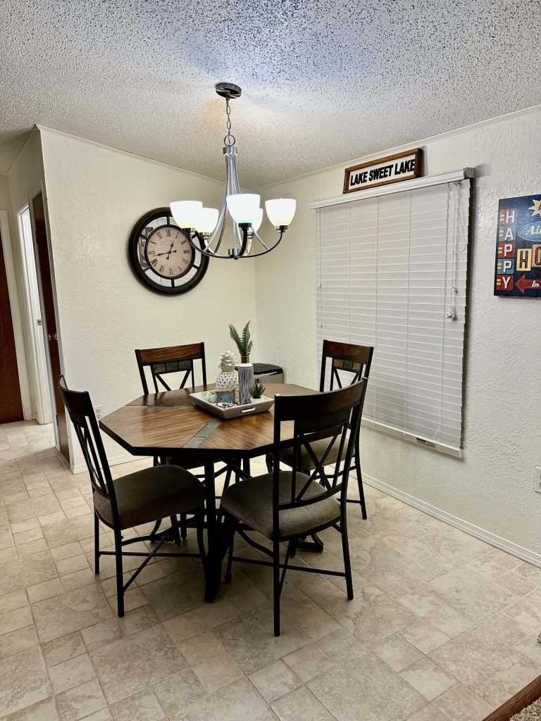 Welcome to this fully furnished 3-bedroom, 2-bathroom single-wide mobile home offering beautiful lake views at Ute Lake. With just over 1,000 sq ft, this home features electric forced central air for year-round comfort. Enjoy the spacious covered back patio, perfect for relaxing and entertaining while taking in the scenery. The property includes a detached carport with space for two vehicles and a 50-amp RV connector, making it ideal for guests or outdoor enthusiasts. Whether you’re looking for a weekend getaway or a full-time residence, this well-maintained home offers comfort and convenience near the water.