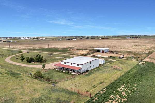Unrestricted 40.82 +/- acres of grassland, fenced, and gated at the road. Three bedroom, 2 bathroom barndominium having 30X38 garage area with 12X12 overhead door and walk in door. 12X12 horse shed in the pasture, and 45X45 equipment shed with storage container under roof. Another 50ft storage container stays with the property. Unfinished upstairs loft gives you a second living area. Also has a roll in shower in second bathroom with a handicap lift.