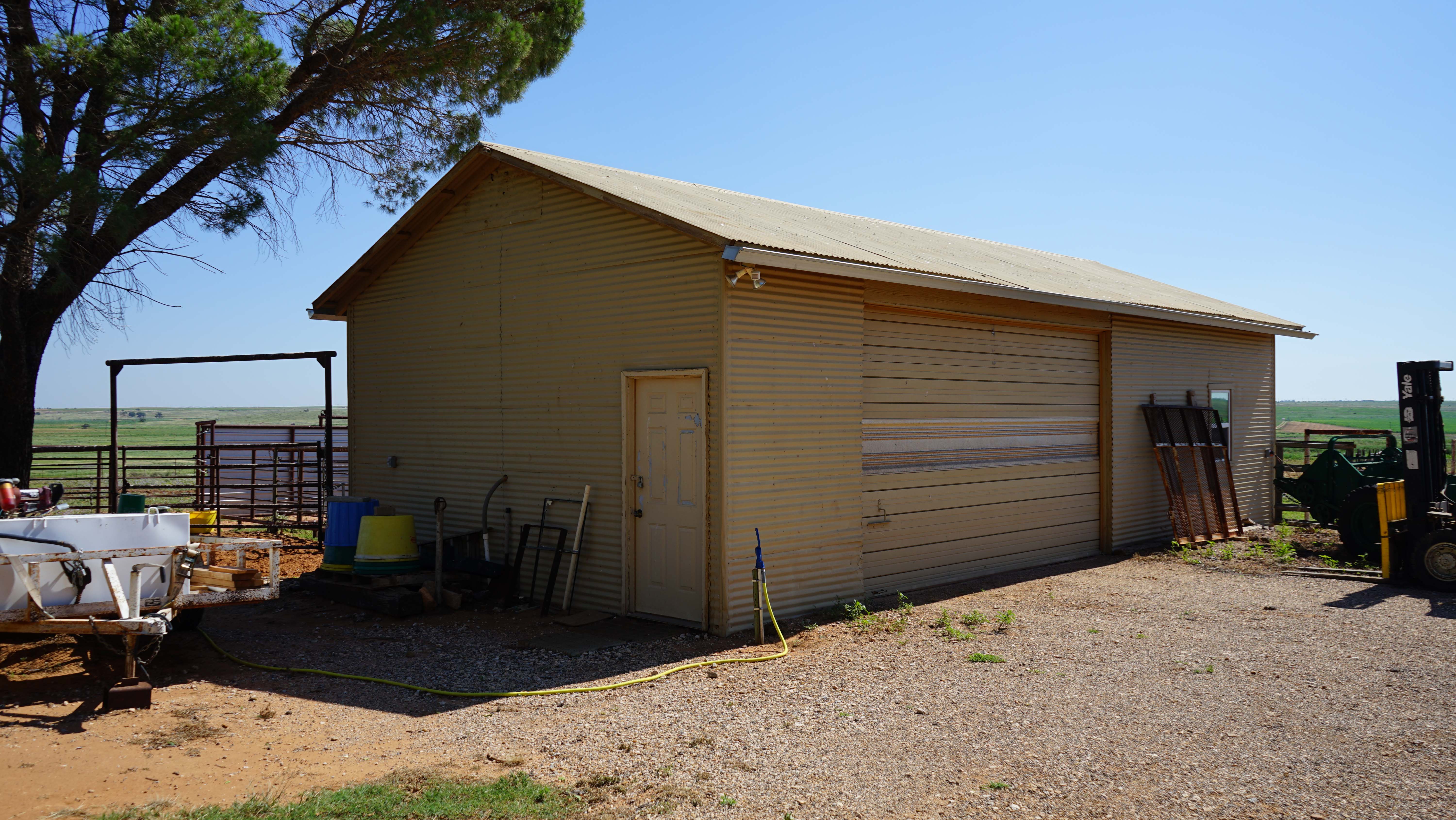 Outdoors, the property is well-equipped for horse or livestock enthusiasts and hobbyists alike. A 30′ x 40′ insulated shop with a concrete floor and gas heat adjoins the west side of the home and is accessible from Highway 385. A second 20′ x 40′ equipment storage building also features a concrete floor and a powered overhead door. For livestock, there’s a 40′ x 40′ barn with a partial concrete floor, tack room, and interior pens, along with a 10′ overhang on the west side for additional shelter.