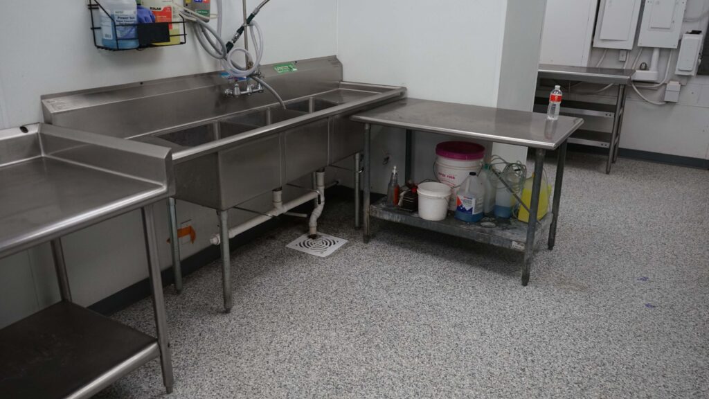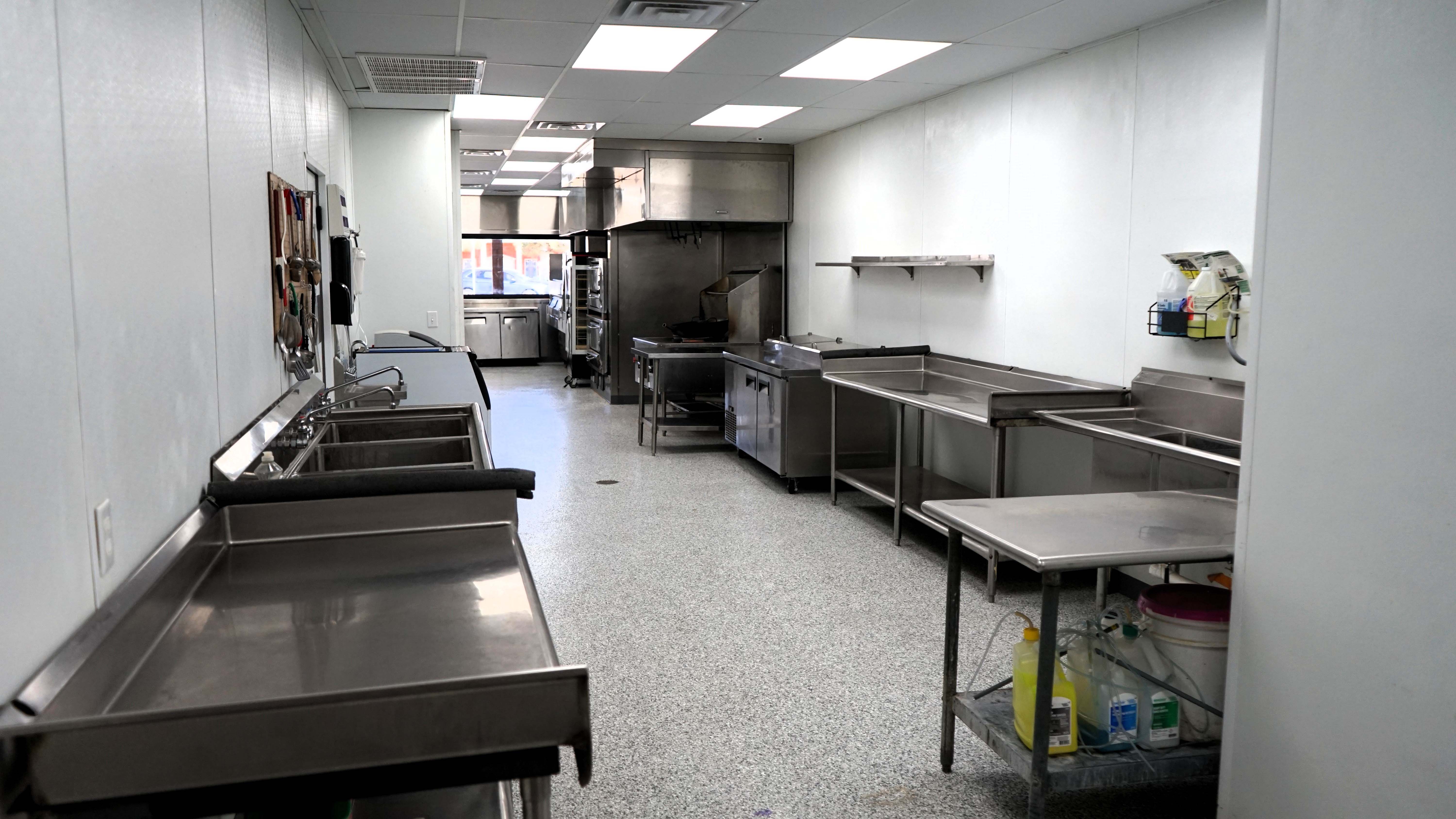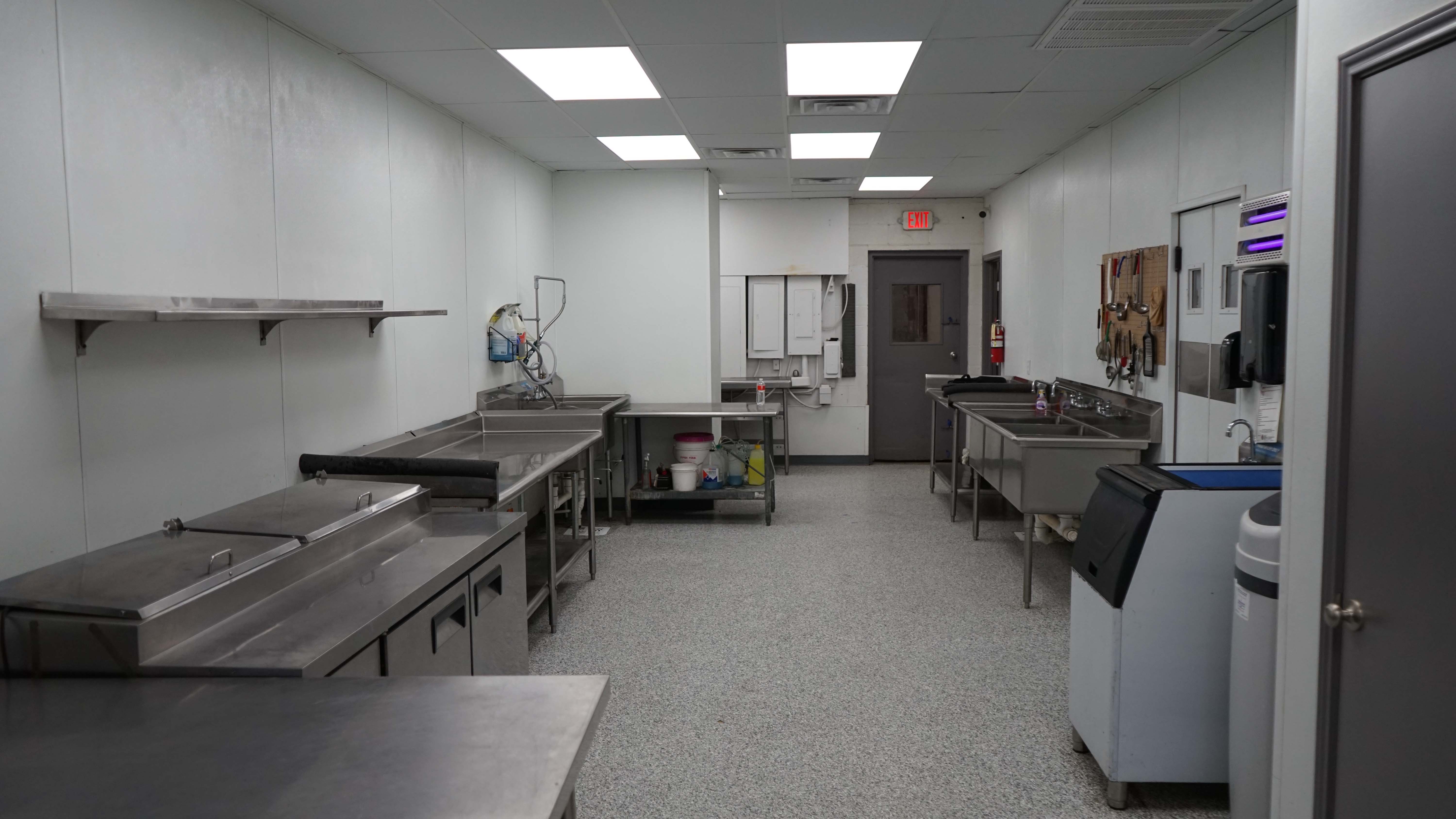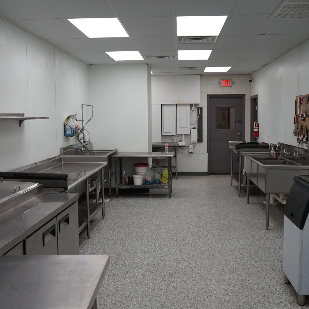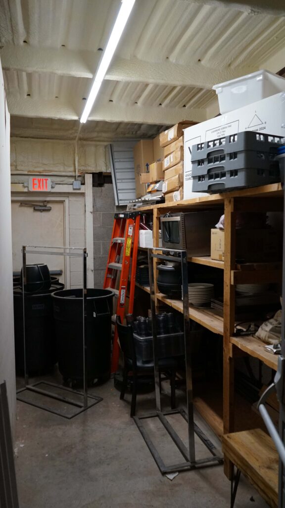 The facility includes approximately 3,000 SF of kitchen, dining, and restroom space, along with an additional 660+ SF of storage. The open dining layout accommodates 90+ guests and is supported by a highly functional commercial kitchen featuring a full hood system with ANSUL fire suppression, grease trap, multiple floor sinks, gas and electric service, and a separate dry hood. A new 8’ x 16’ walk-in cooler/freezer combo is also in place.