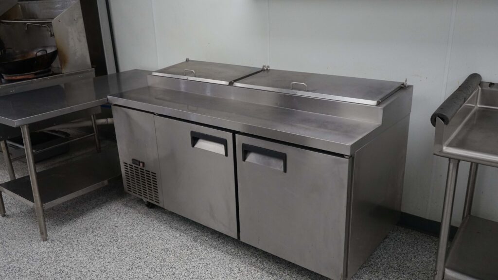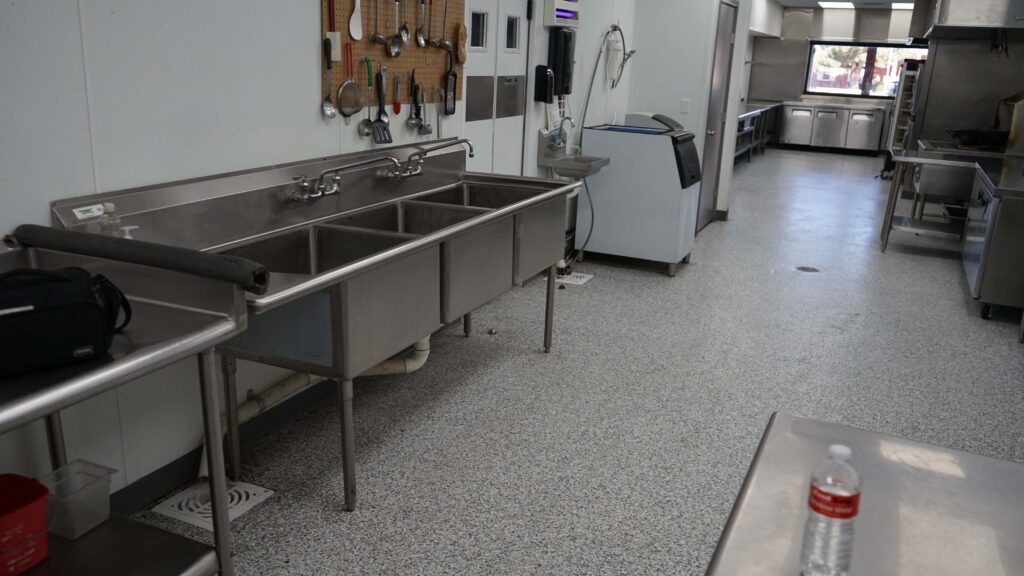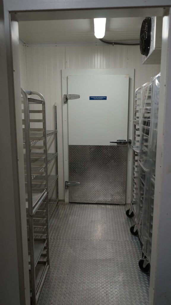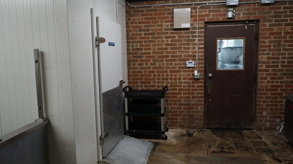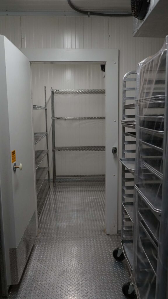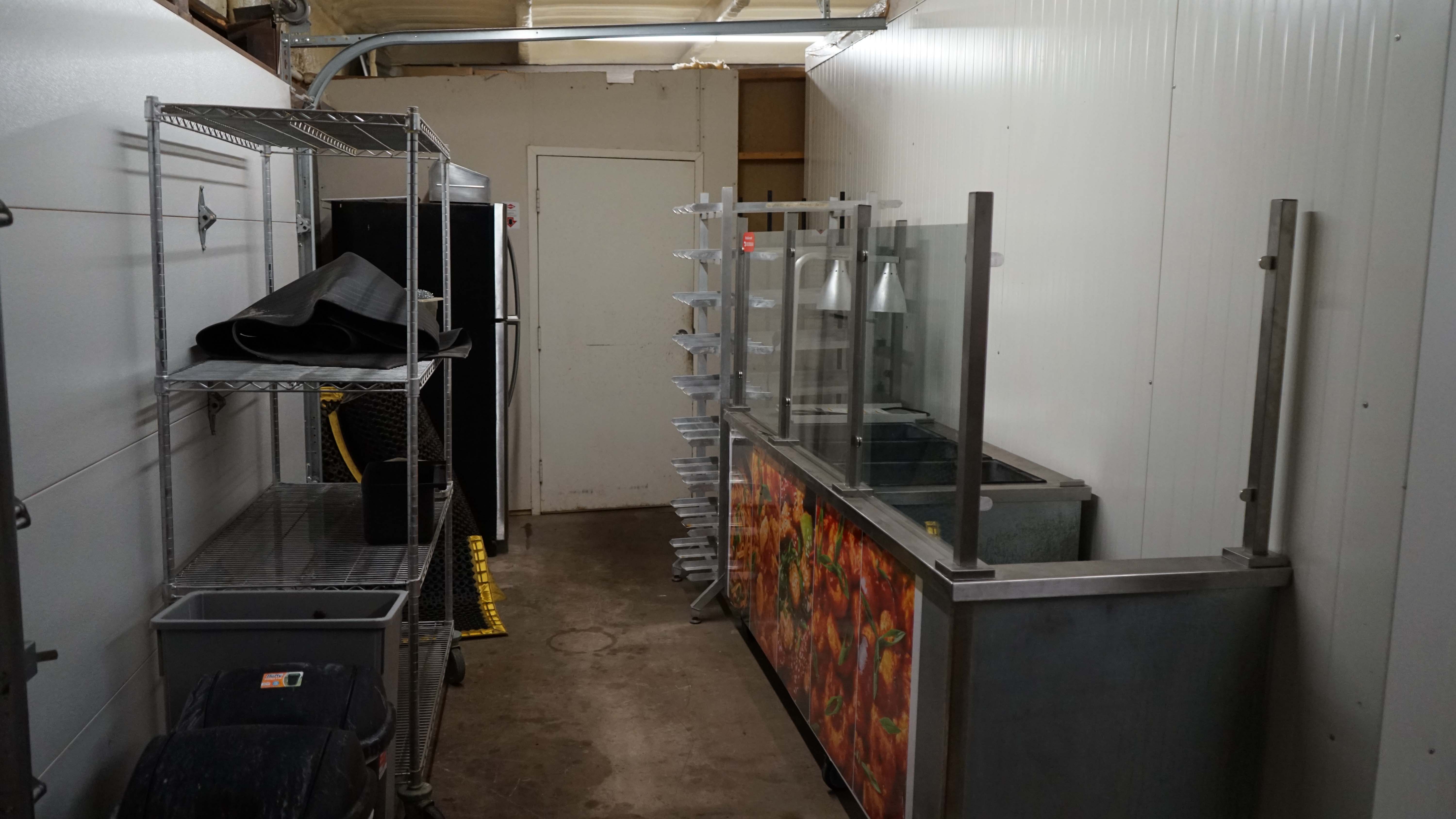 The facility includes approximately 3,000 SF of kitchen, dining, and restroom space, along with an additional 660+ SF of storage. The open dining layout accommodates 90+ guests and is supported by a highly functional commercial kitchen featuring a full hood system with ANSUL fire suppression, grease trap, multiple floor sinks, gas and electric service, and a separate dry hood. A new 8’ x 16’ walk-in cooler/freezer combo is also in place.