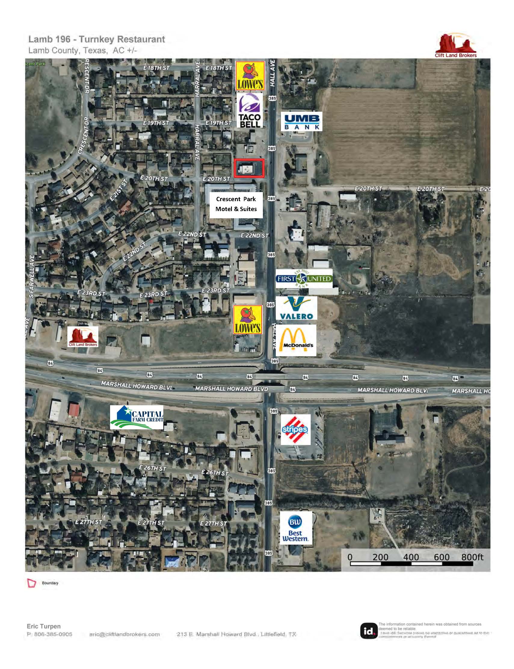 This is a rare opportunity to acquire what is widely considered the nicest restaurant space in Littlefield, ideally positioned on the main retail corridor along U.S. Highway 385 (Hall Avenue) at the corner of E. 20th Street, just minutes from U.S. Highway 84. The property offers outstanding visibility, easy access, and strong regional traffic flow along a major north/south and east/west corridors.