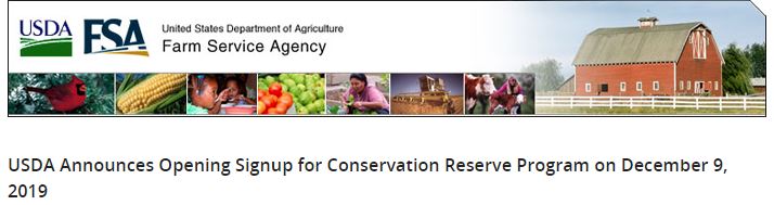 The USDA is opening signup for the Conservation Reserve Program (CRP) today. Click here for more information on signing up and to read the full article.